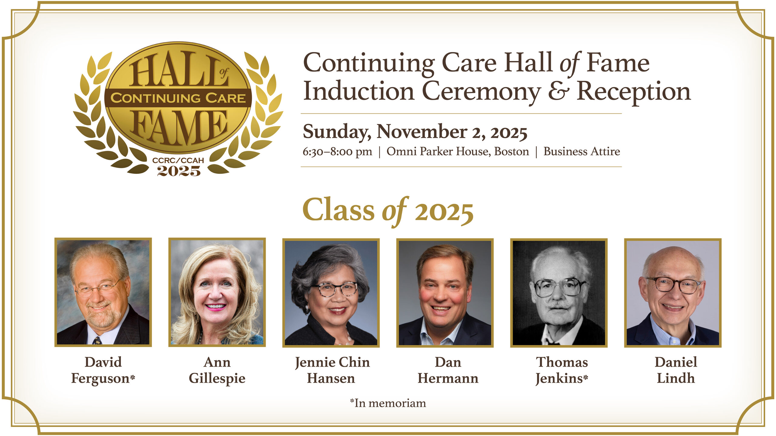 The Continuing Care Hall of Fame (CCHoF) commemorates and pays tribute to individuals and organizations who have made extraordinary achievements and contributions to the development of Continuing Care Retirement Communities (CCRCs) aka Life Plan Communities and Continuing Care at Home (CCaH) programs.